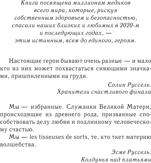 "Как и свадебное платье, созданное с любовью, эта история пронизана романтикой и тайнами, которые очаруют... и заставят читателей поверить в магию". - Кристин Нолфи, автор бестселлеров