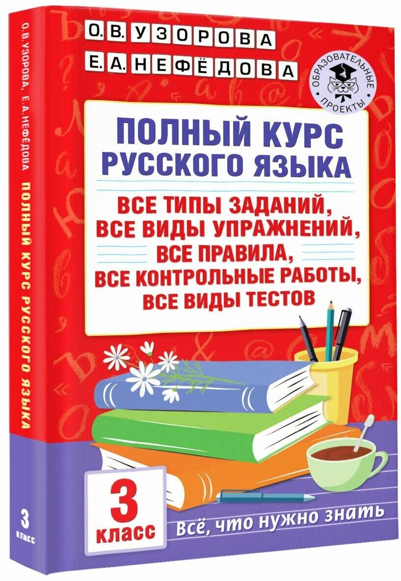 Полный курс русского языка: 3-й кл.: все типы заданий все виды упражнений все правила все контрольные работы все виды тестов (Елена Алексеевна Нефедова, Ольга Васильевна Узорова); АСТ, 2023