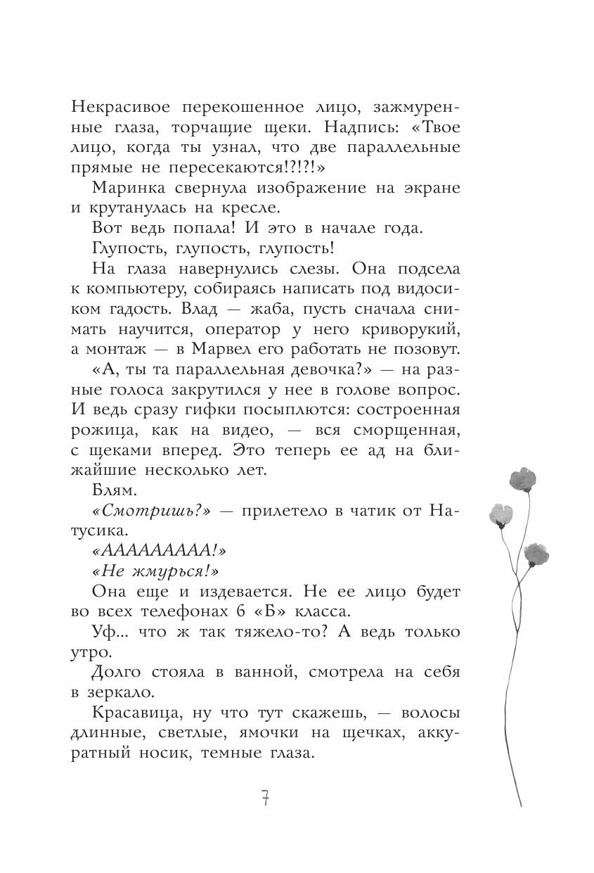 Марине 13 лет. Почти. Хочется быть популярной среди одноклассников. И вообще популярной. Она красивая, но не заводная, не такая, которая нравится всем своей энергией и задором. Просто тихая, положительная девочка, по определению учителей. А какие страсти кипят внутри «положительной девочки» — это никому не интересно. И вот случай — стать звездой соцсетей благодаря суперхаризматичному Владу! А надо ли это Марине? Может, лучше остаться на диване с кошкой Лисой?