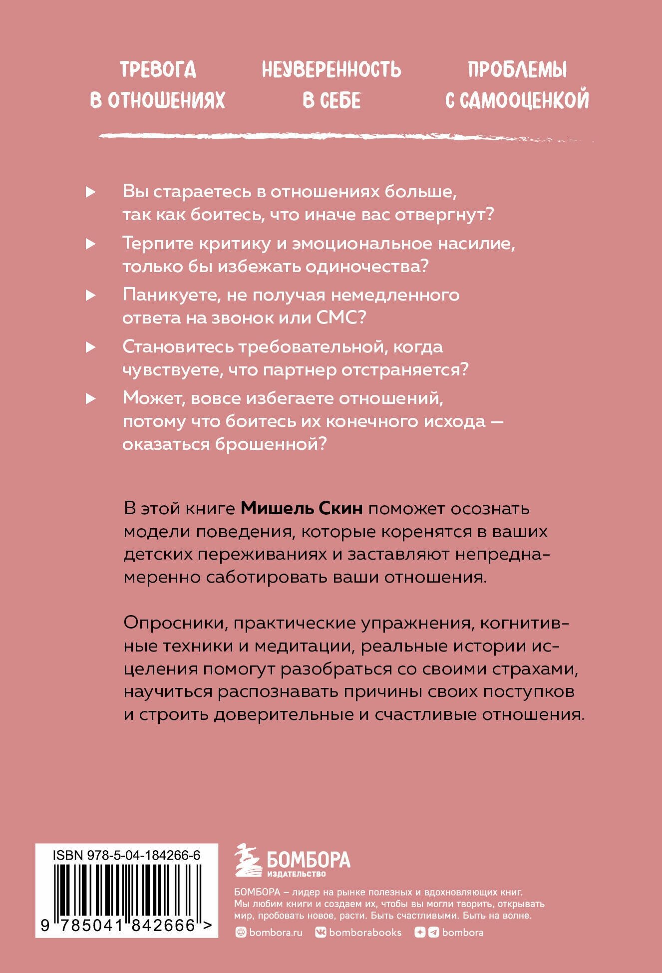 Если в отношениях присутствует тревога - эта книга вам поможет. У меня проблемы с самокритичностью и иногда это очень мешает, потому что самооценка скачет во все стороны, а эта книга помогла мне осмотреть всю себя со стороны и стало немного легче, проще говорить с собой и вести переговоры, без странного напряжения.
