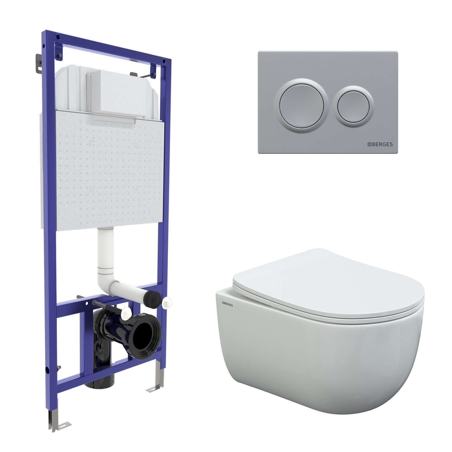 Комплект унитаза с инсталляцией Berges Novum 043240 с сиденьем Микролифт и клавишей смыва Хром матовый