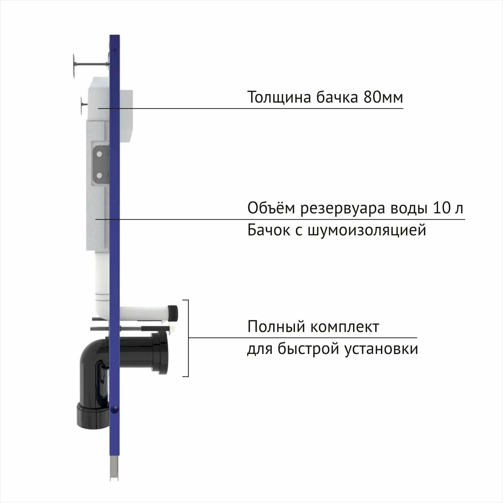 | Комплектация | бачок; инструкция; монтажная рама; панель смыва |