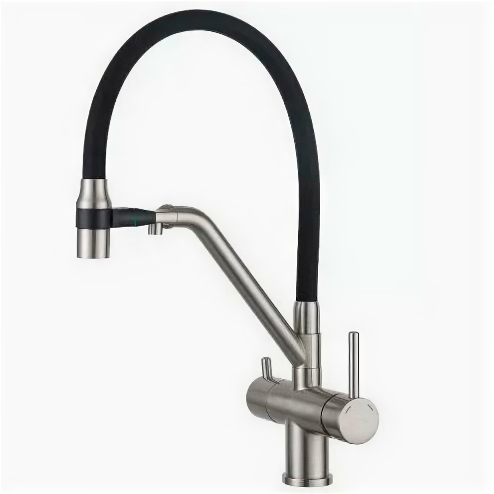 Смеситель для кухни, с возможностью подключения фильтрованной воды. Гибкий излив. Режим душ излива.
