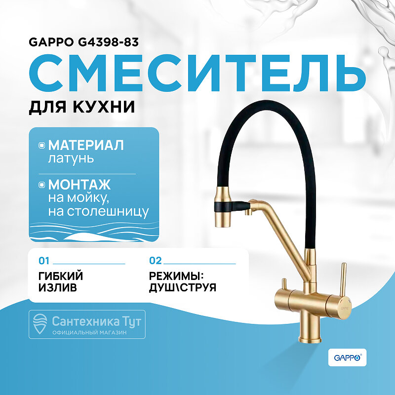 На сегодняшний день товар «Смеситель для кухни Gappo G4398-83 Золотой сатин Черный» можно купить с кешбеком в 3 магазинах: Santehnika-room, Сантехника Тут, Яндекс.Маркет