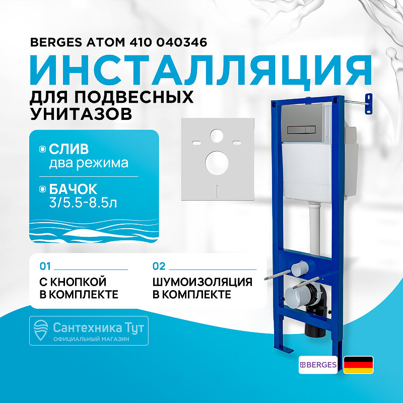 Сервис сравнения цен СкидкаГИД предлагает сравнить цены на товар «Инсталляция Berges Atom 410 040346 для унитаза с клавишей смыва Хром матовый»