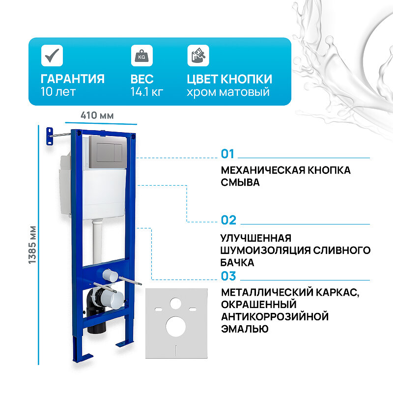 | Комплектация | бачок; инструкция; монтажная рама; панель смыва |
