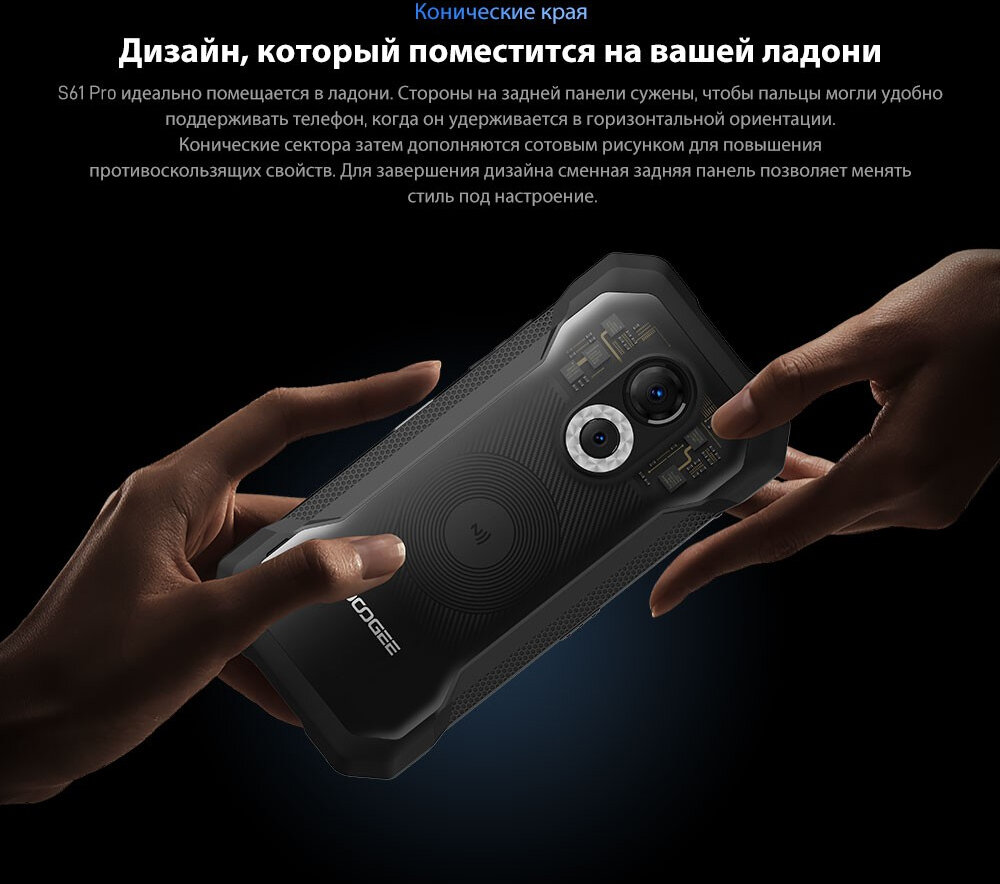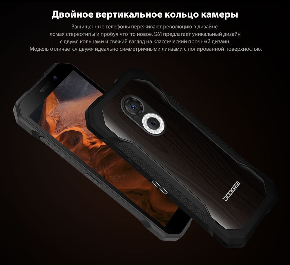 Doogee S61 Pro Wood Grain, 6'' 720x1440, 4x2.3ГГц + 4x1.8ГГц, 8 Core, 8GB RAM, 128GB, up to 512GB flash, 48 МП + 20 МП/16Mpix, 2 Sim, 2G, 3G, LTE, BT v5.0, Wi-Fi, NFC, GPS, Type-C, 5180mAh, Android 12, 266 г, 167,4 ммx81.4 ммx14,6 мм