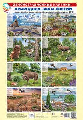 Издательство «ТЦ Сфера» представляет комплект «Природные зоны России», состоящий из 8 цветных демонстрационных картин формата А3 и этикетки, на обороте которой приводятся беседы, игры, занятия и упражнения с детьми по каждой картине.