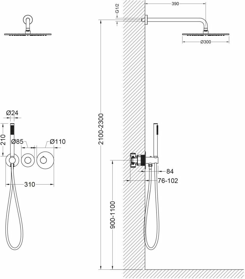 | Габариты верхнего душа | 300 |