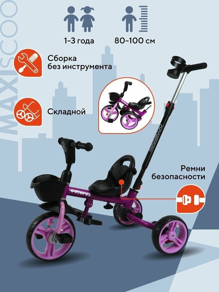 Сервис сравнения цен СкидкаГИД предлагает сравнить цены на товар «Велосипед Детский Трехколесный Складной Maxiscoo Серия "Octopus" (2023) с Ручкой Управления 170391 (MSC-TCL2302BL)»