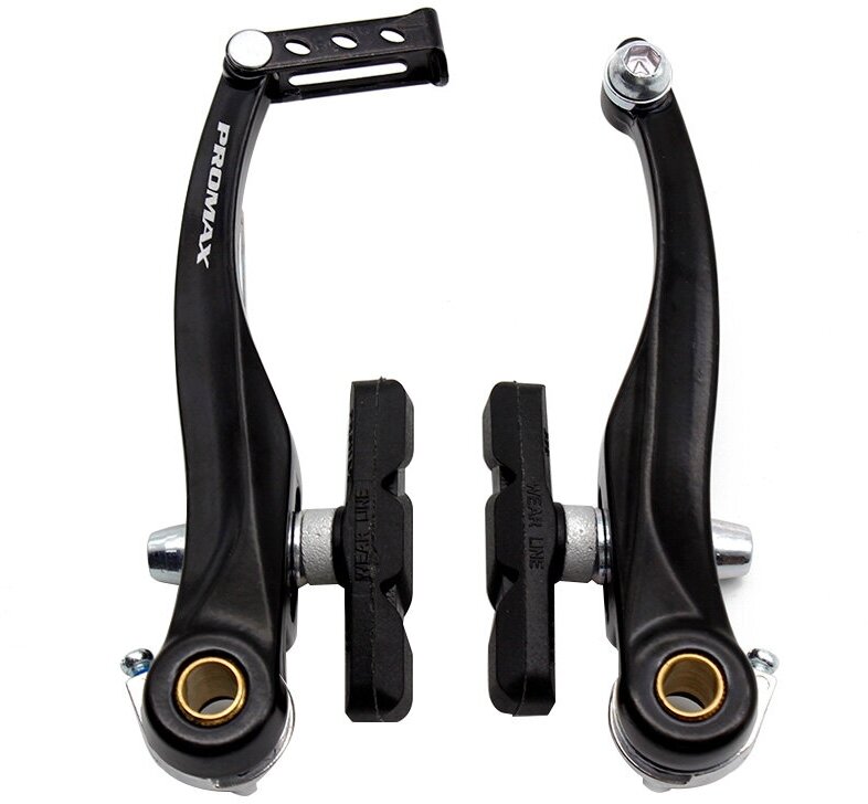 Promax TX-117 - недорогие прочные ободные тормоза черного цвета. Принадлежат к типу V-brake. Рассчитаны на велосипеды любительского уровня. Имеют небольшой вес. Снабжены съемными тормозными колодками.