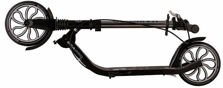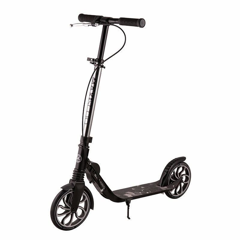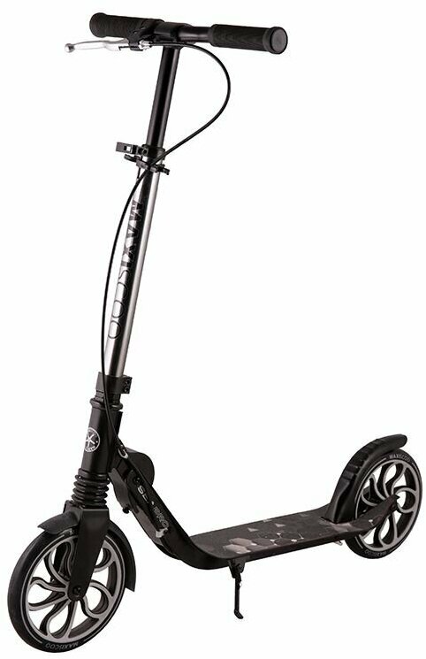 Самокат с большими колесами, монолитным рулем и амортизационной вилкой сделают более комфортной езду по дороге с небольшими неровностями. На таком самокате можно легко отправиться в путешествие по городу и преодолевать большие расстояния. А ручной тормоз даст уверенность в том, что самокат остановится именно там, где вы рассчитываете. При необходимости можно сложить самокат, используя быструю систему складывания кнопкой. Самокат почти полностью сделан из алюминия, что обеспечивает его легкий вес.