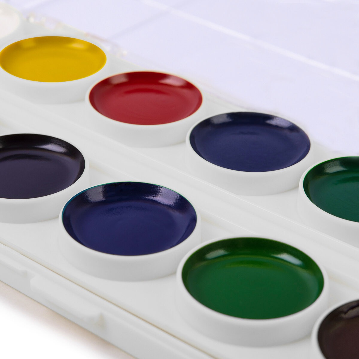 Акварель выпускается в двухъярусном пластиковом пенале с прозрачной крышкой и европодвесом. Пенал функционален и достаточно прочен. Двухъярусная форма делает его компактным по размеру, благодаря чему можно сэкономить место в рюкзаке. Крышку пенала идеально использовать как палитру для смешивания красок, предусмотрено отделение для кисточки. Замок и крепление надежны, пенал выдерживает падения и многократные открывания.