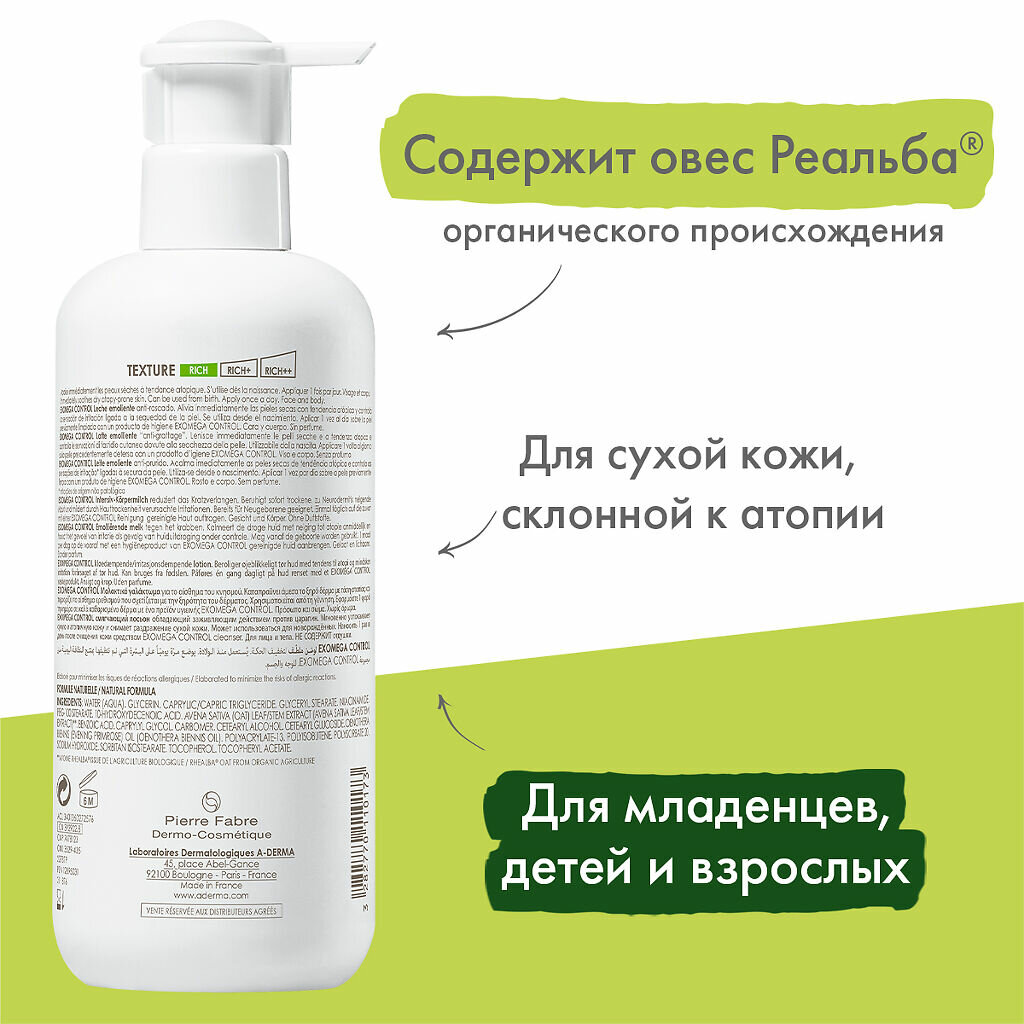 Смягчающий лосьон для лица и тела A-derma exomega control 400 мл (600582)