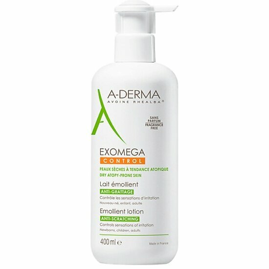 Лосьон смягчающий для лица и тела для сухой и склонной к атопии кожи (A-Derma Exomega Control Lait Emollient). Средство способствует укреплению защитного липидного слоя, минимизирует восприимчивость к воздействию внешних агрессивных факторов и предотвращает дегидратацию кожи. Лосьон мгновенно впитывается, но при этом интенсивно питает, смягчает, освежает и восстанавливает дерму. Регулярное применение A-Derma Exomega Control Lait Emollient обеспечит гладкость и бархатистость кожи, придаст ей ухоженный вид. При этом исчезают шелушения, зуд, воспаления и другие признаки атопии. Приятная текстура Lait Emollient A-Derma обеспечивает легкое нанесение средства на кожу. Смягчающий лосьон Экзомега особенно незаменим в весенне-летний период. Продукт содержит более 95% натуральных компонентов.