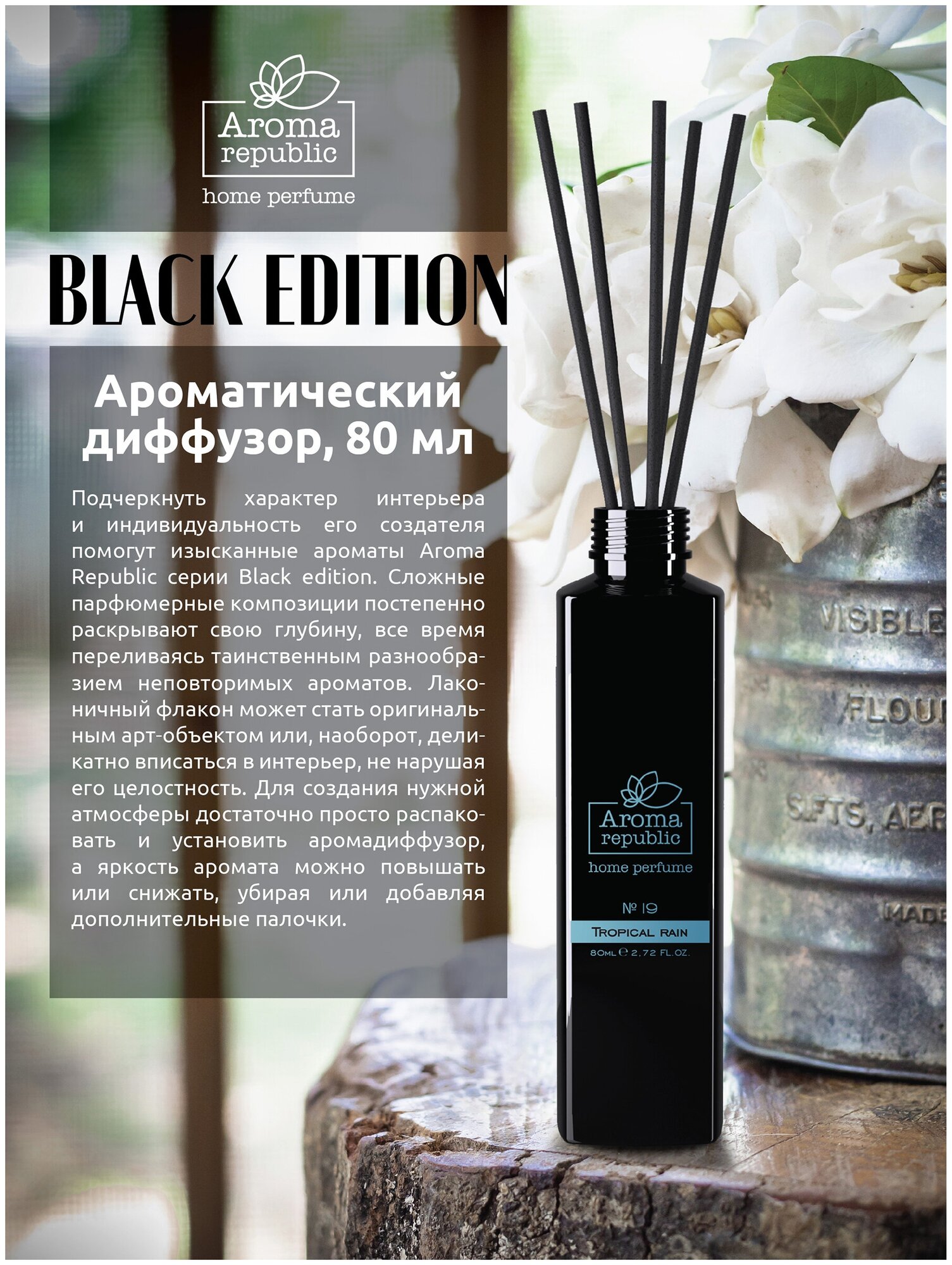Аромадиффузор AROMA REPUBLIC 80 мл №19 Tropical rain Ароматический диффузор №19 Tropical rain 80 мл