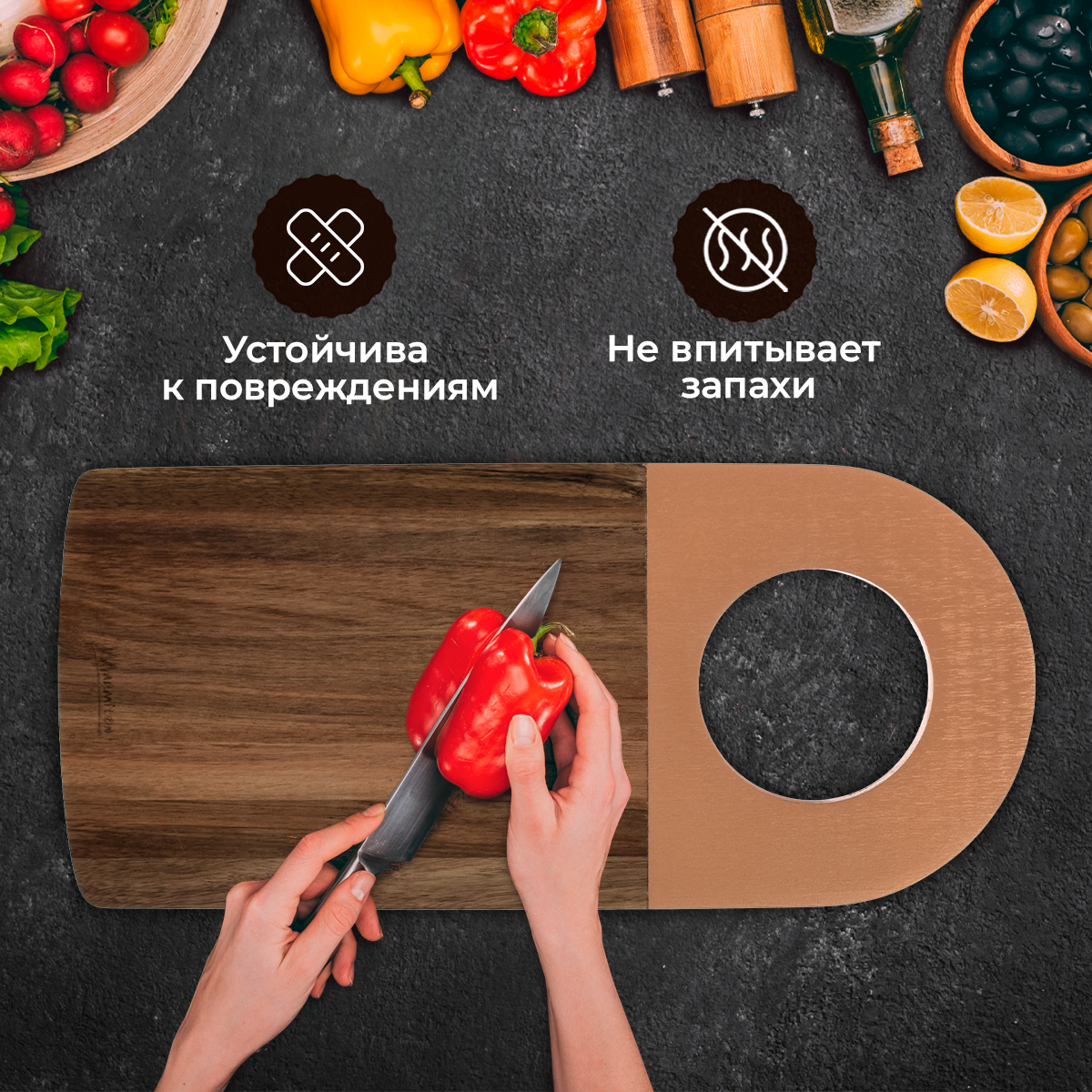 Сервировочная доска marmiton акация, 42x19x1.5 см, золото 17631 предназначена для разделки и измельчения всех видов продуктов.