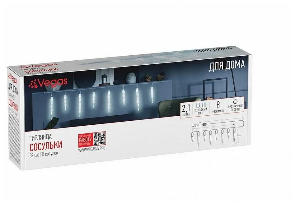 Сервис сравнения цен СкидкаГИД предлагает сравнить цены на товар «Электрогирлянда VEGAS Электрогирлянда Сосульки 32 холодных LED ламп»