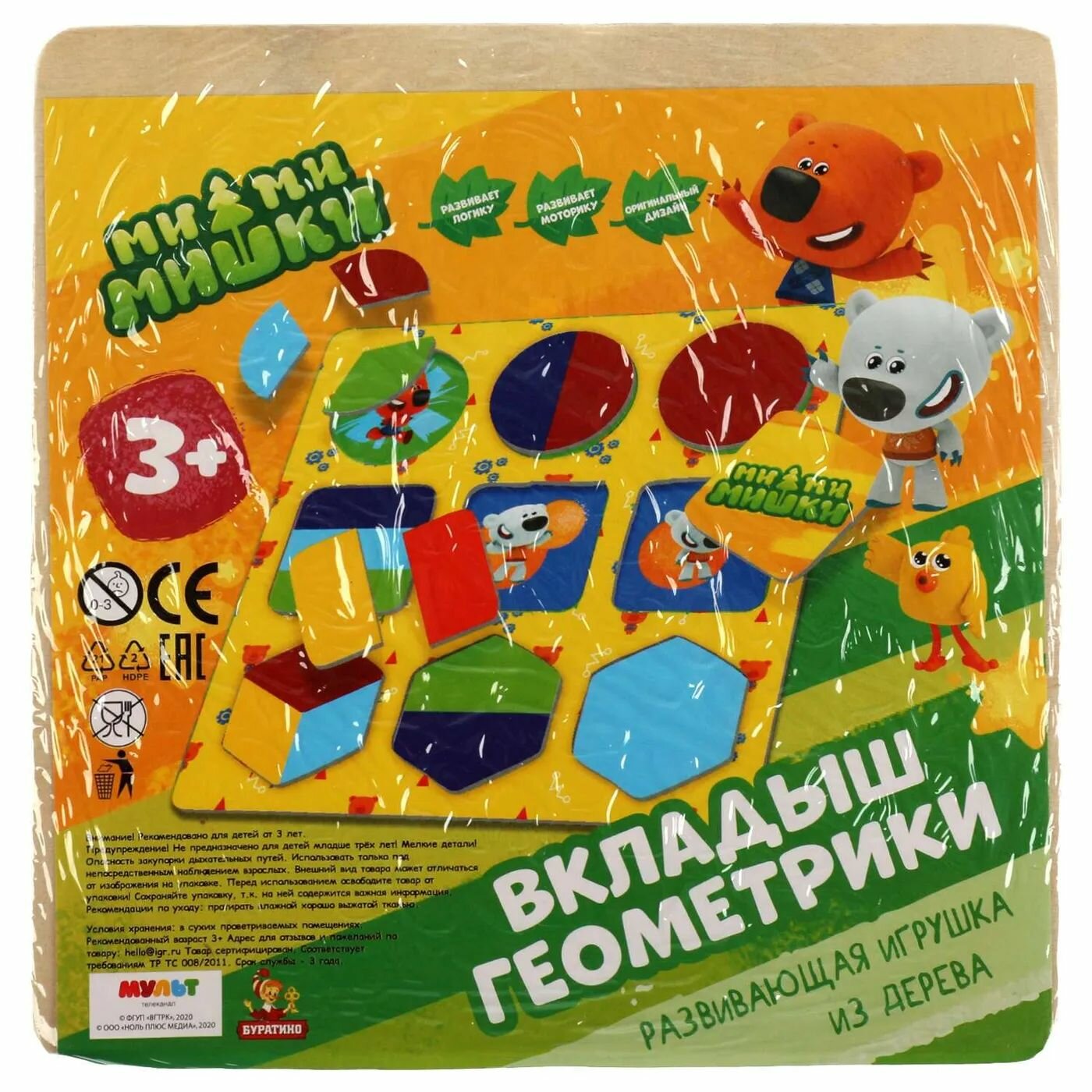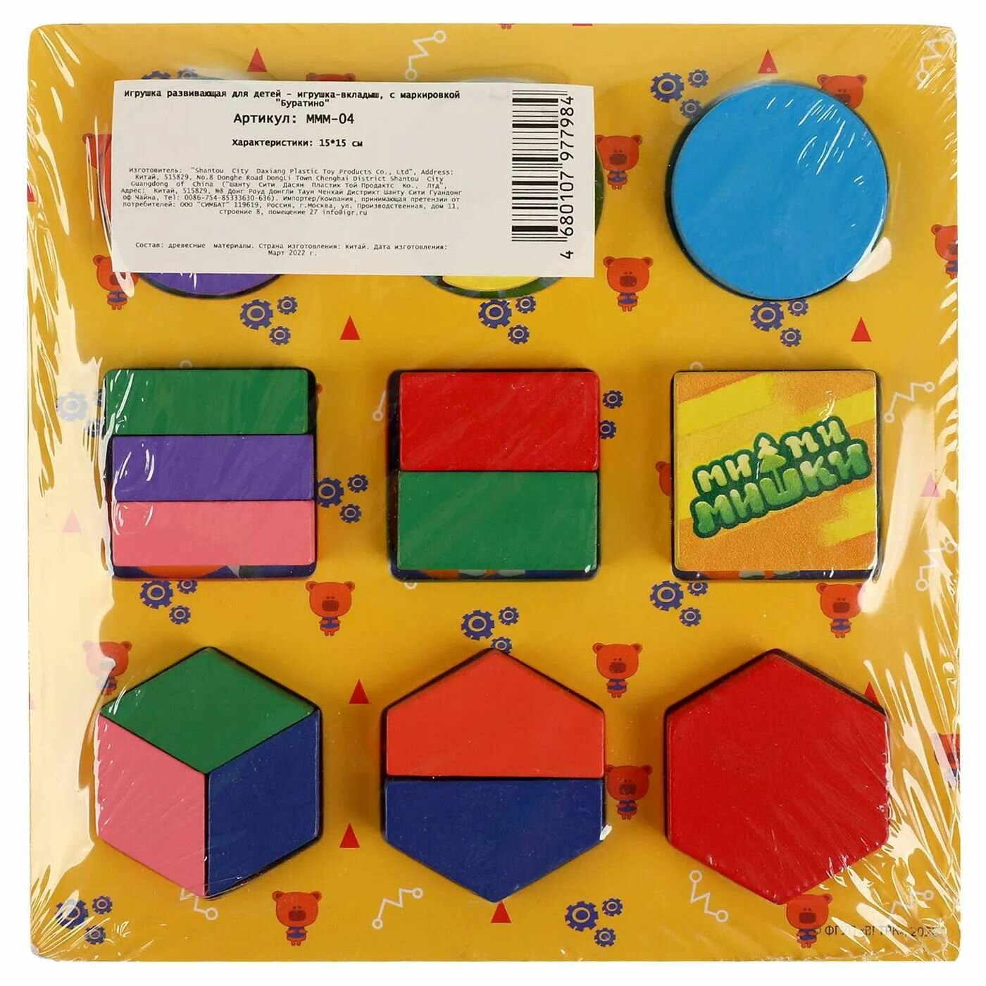 Деревянная игрушка Буратино Вкладыши геометрики Ми-ми-мишки 15х15 см