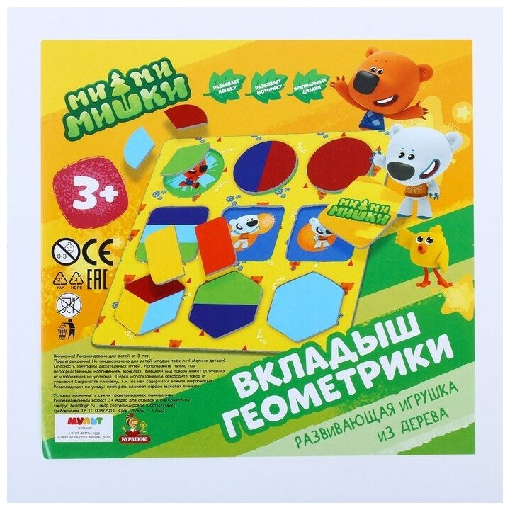 Деревянная рамка-вкладыш «Ми-ми-мишки. Геометрики» ТМ «Буратино» - отличная развивающая игра для маленьких поклонников мультсериала про весёлых медвежат и их друзей: