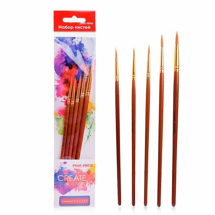 Набор кистей синтетика №2 3 5 6 7 5 штук Prof-press