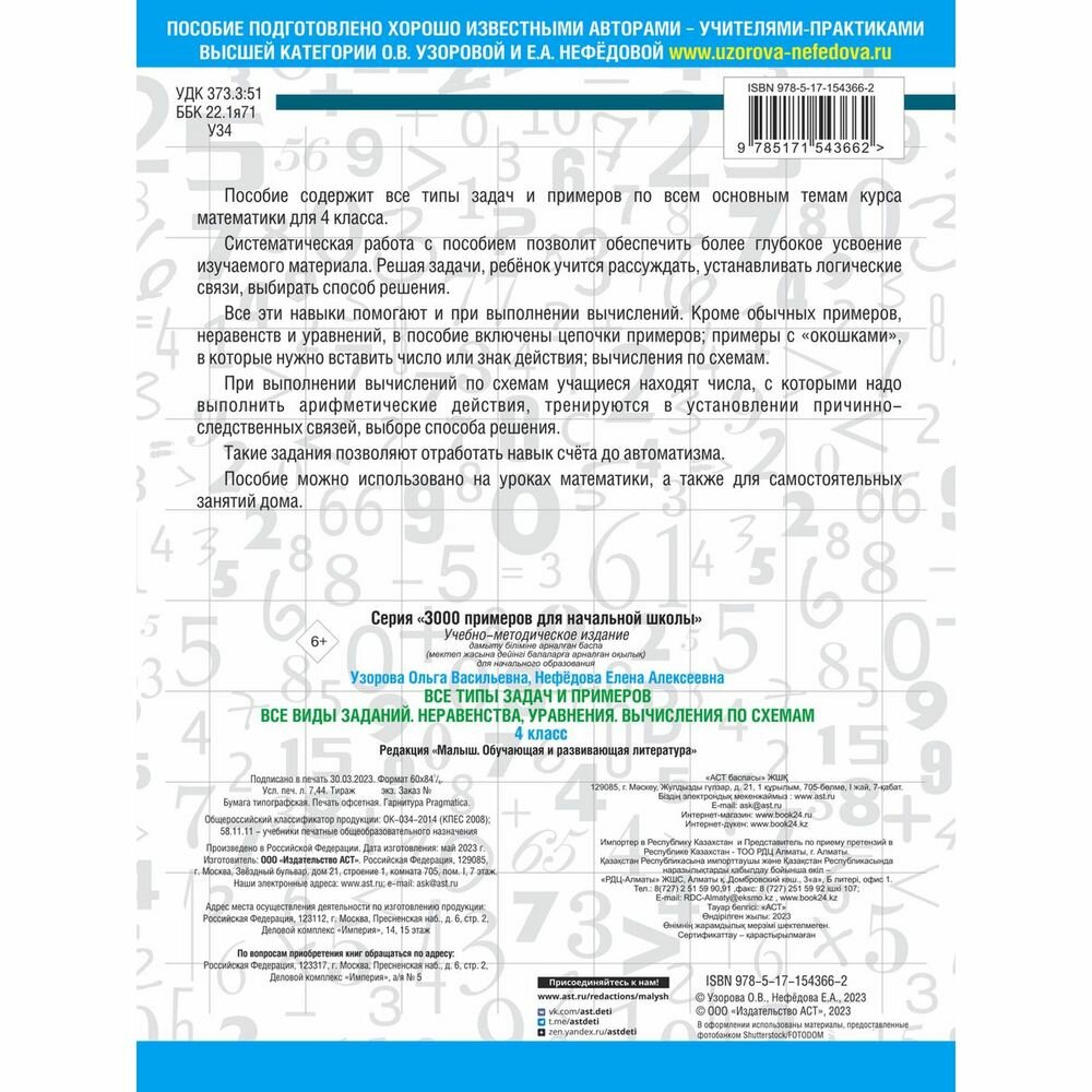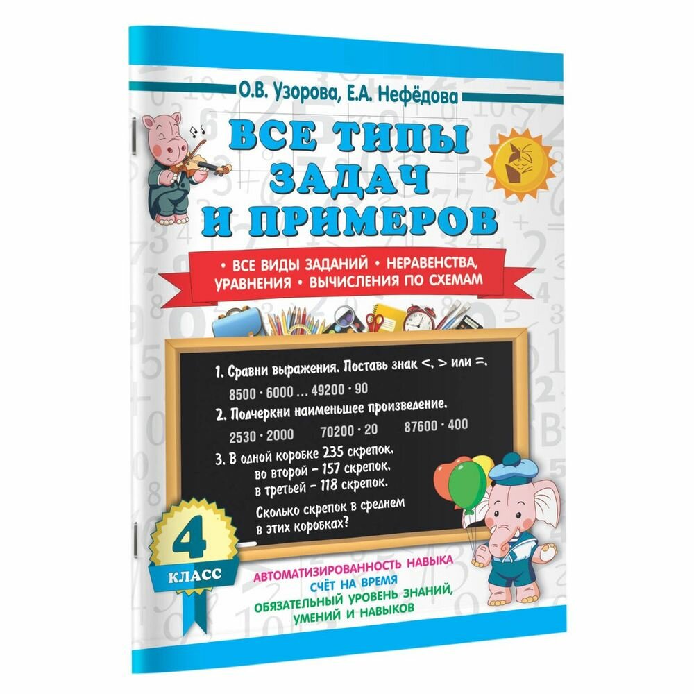 Все типы задач и примеров 4 класс. Все виды заданий. Неравенства уравнения. Вычисления по схемам (Елена Алексеевна Нефедова, Ольга Васильевна Узорова); АСТ, 2023