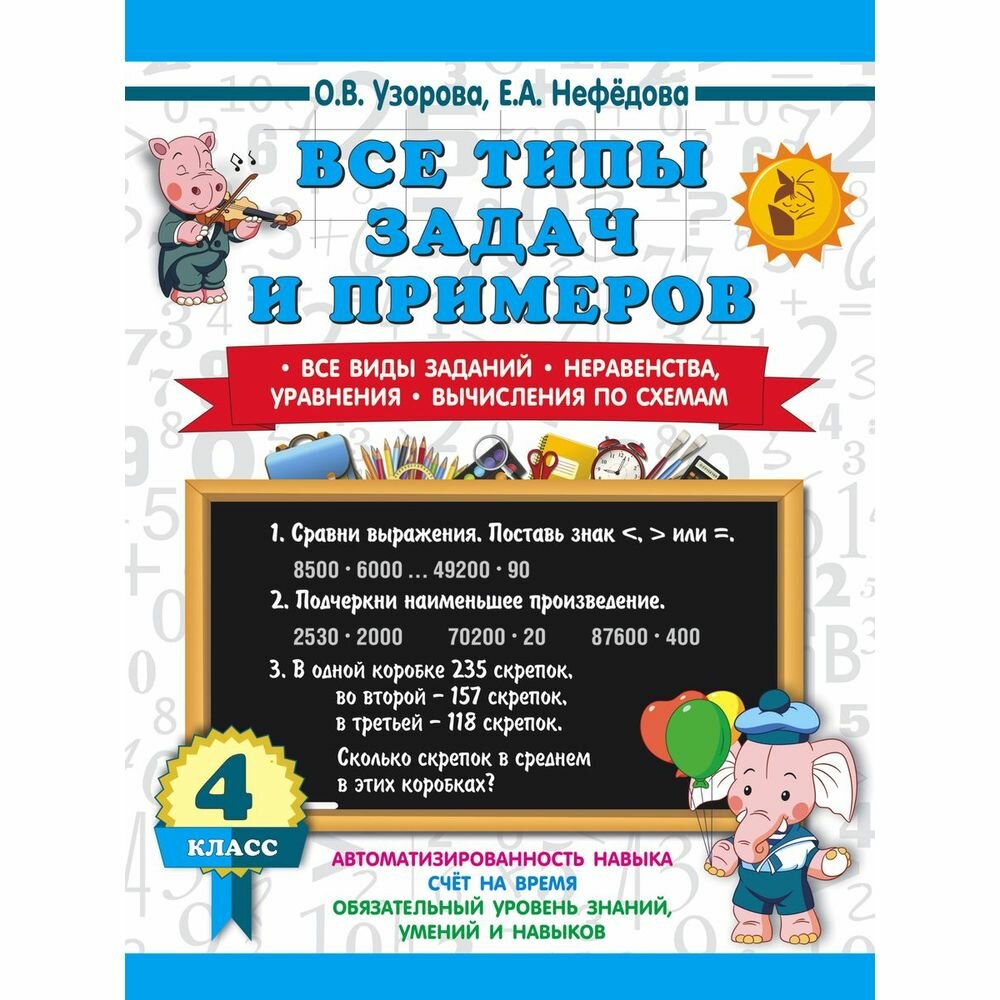 Сервис сравнения цен СкидкаГИД предлагает сравнить цены на товар «Книга: Все типы задач и примеров 4 класс. Все виды заданий. Неравенства уравнения. Вычисления по схемам (Елена Алексеевна Нефедова, Ольга Васильевна Узорова); АСТ, 2023»
