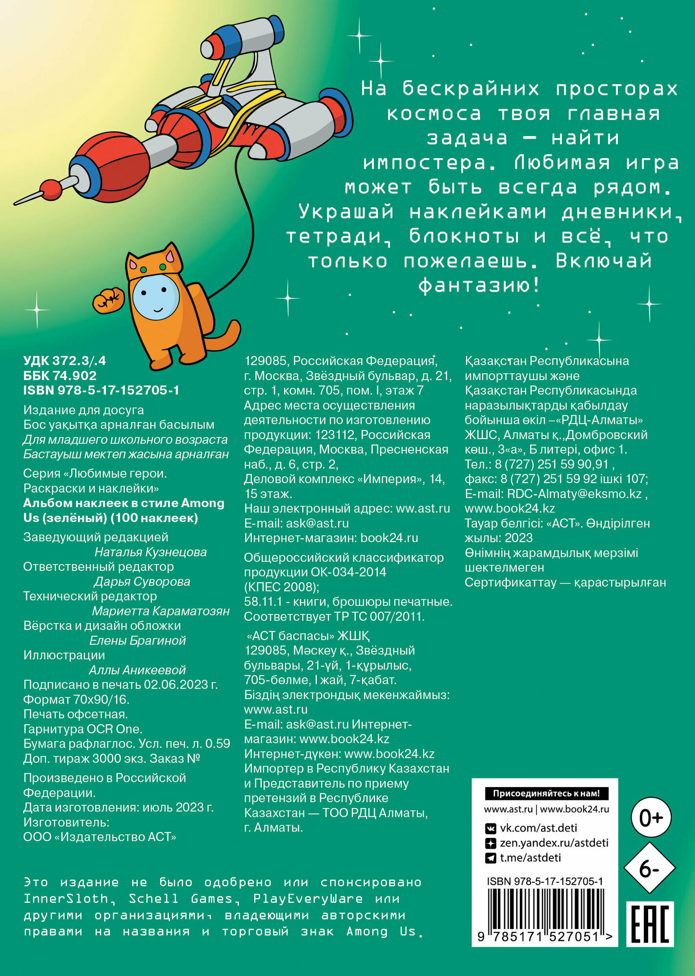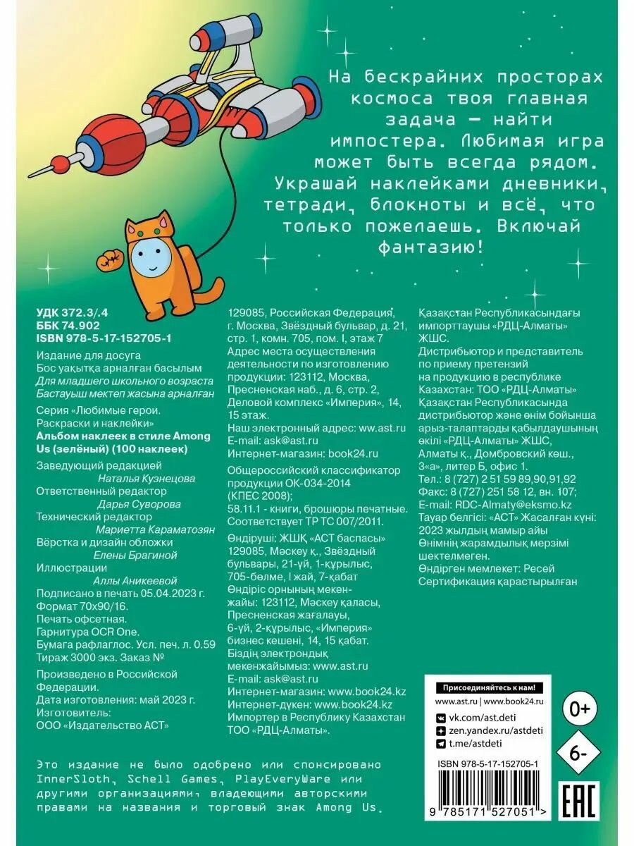 Альбом наклеек в стиле Among Us (зелёный) (100 наклеек) (Аникеева Алла (иллюстратор)); АСТ, 2023