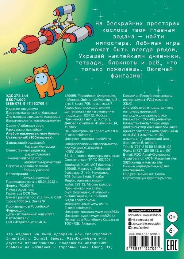 Сервис сравнения цен СкидкаГИД предлагает сравнить цены на товар «Книга: Альбом наклеек в стиле Among Us (зелёный) (100 наклеек) (Аникеева Алла (иллюстратор)); АСТ, 2023»