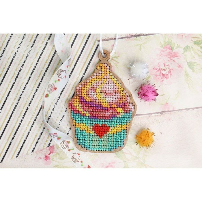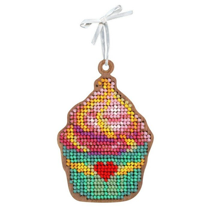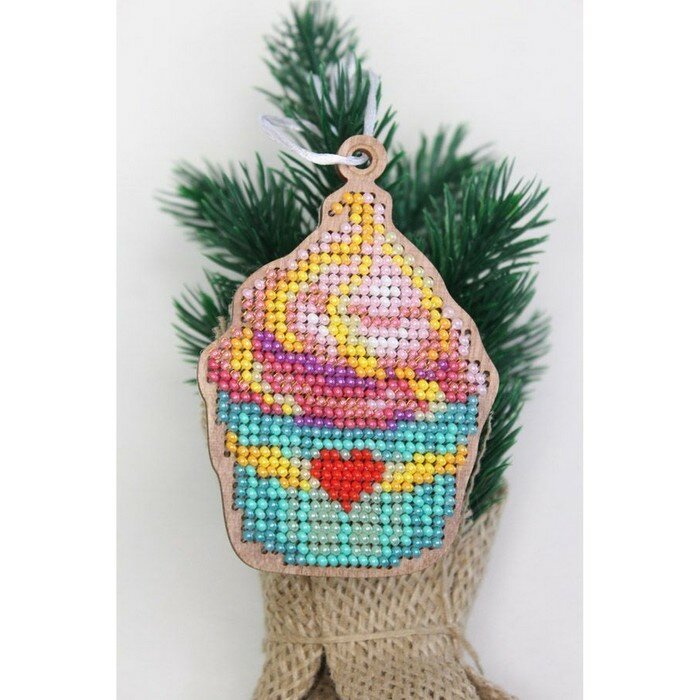 Пирожное вышитое бисером украсит любую ель. Готовое изделие будет радовать круглый год. После праздника его можно повесить на кухне. Оригинальный подарок любой рукодельнице (маме, тете, девушке, бабушке, сестре). А еще некоторые мужчины занимаются вышивкой.Если собрать комплект из двух пирожных и леденца, получится оригинальная композиция для чаепития. Артикул О-065 Пирожное №1 и О-063 Леденец.В состав набора входит все необходимое для работы:• Тонированная перфорированная основа из фанеры 3 мм.• Бисер 12 цветов Preciosa.• Белый фетр для обработки изнаночной стороны (толщина 1 мм).• Атласная лента.• Бумажная двухцветная символьная схема.• Игла.• Подробная инструкция по выполнению работы на восьми языках (русском, английском, французском, польском, немецком, испанском и казахском).