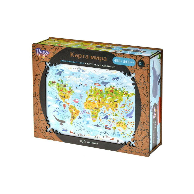- Детская Карта Мира | Unidragon | Деревянный Пазл