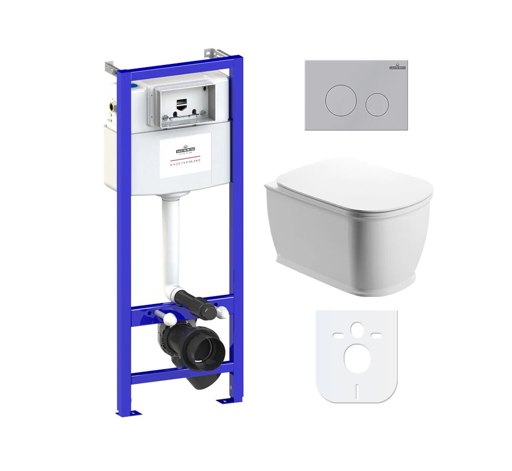 Унитаз с инсталляцией Lavinia Boho Bell Pro 77040043. Инсталляционное решение для прямого удлиненного монтажа рамы к стене с диапазоном регулирования по глубине от передней кромки конструкции 155 450 мм. Такое решение позволит без труда закрепить инсталляцию с унитазом даже на существенном расстоянии от стены, обойдя выступающие сантехнические сооружения. Бачок скрытого монтажа, корпус которого изготовлен из долговечного полимерного материала HDPE, является цельнолитым (бесшовным). Наливной и сливной механизмы обеспечивают бесперебойную работу смыва и самый низкий уровень шума в своем классе - 8.5 Db. Безободковый подвесной унитаз, в конструкции которого действительно отсутствуют труднодоступные места, способствующие скапливанию грязи и размножению патогенных бактерий. Унитаз с мощным каскадным смывом и минимальным распространением неприятных запахов. Конструкция чаши унитаза позволяет избежать попадания брызг воды при пользовании туалетом. Стильное ультратонкое сиденье выдерживает нагрузку до 400 кг. Сиденье гипоаллергенно и полностью безопасно при контакте с кожей человека. Ультратонкий монтаж клавиши смыва обеспечивает высокую эстетику, а также облегчает поддержание чистоты в туалете. Панель смыва минимально выступает за поверхность кафеля и относится к одним из самых тонких решений на рынке. Звукоизоляционная пластина для подвесной керамики позволит существенно снизить шум воды, сливаемой из бачка инсталляционной системы. Дополнительно, пластина станет амортизирующей прослойкой между керамикой и плиткой, защищая поверхности от повреждения. Шумоизоляция оснащена необходимыми универсальными монтажными отверстиями для легкой установки любой подвесной керамики. Комплектация: безободковая чаша подвесного унитаза; быстросъемное сиденье микролифт; комплект крепления для скрытого подвесного монтажа; фигурный ключ для навески и фиксации унитаза; система инсталляции; универсальный комплект креплений; шумоизоляция для подвесной керамики; клавиша смыва серая; инструкция по монтажу и эксплуатации; гарантийный талон