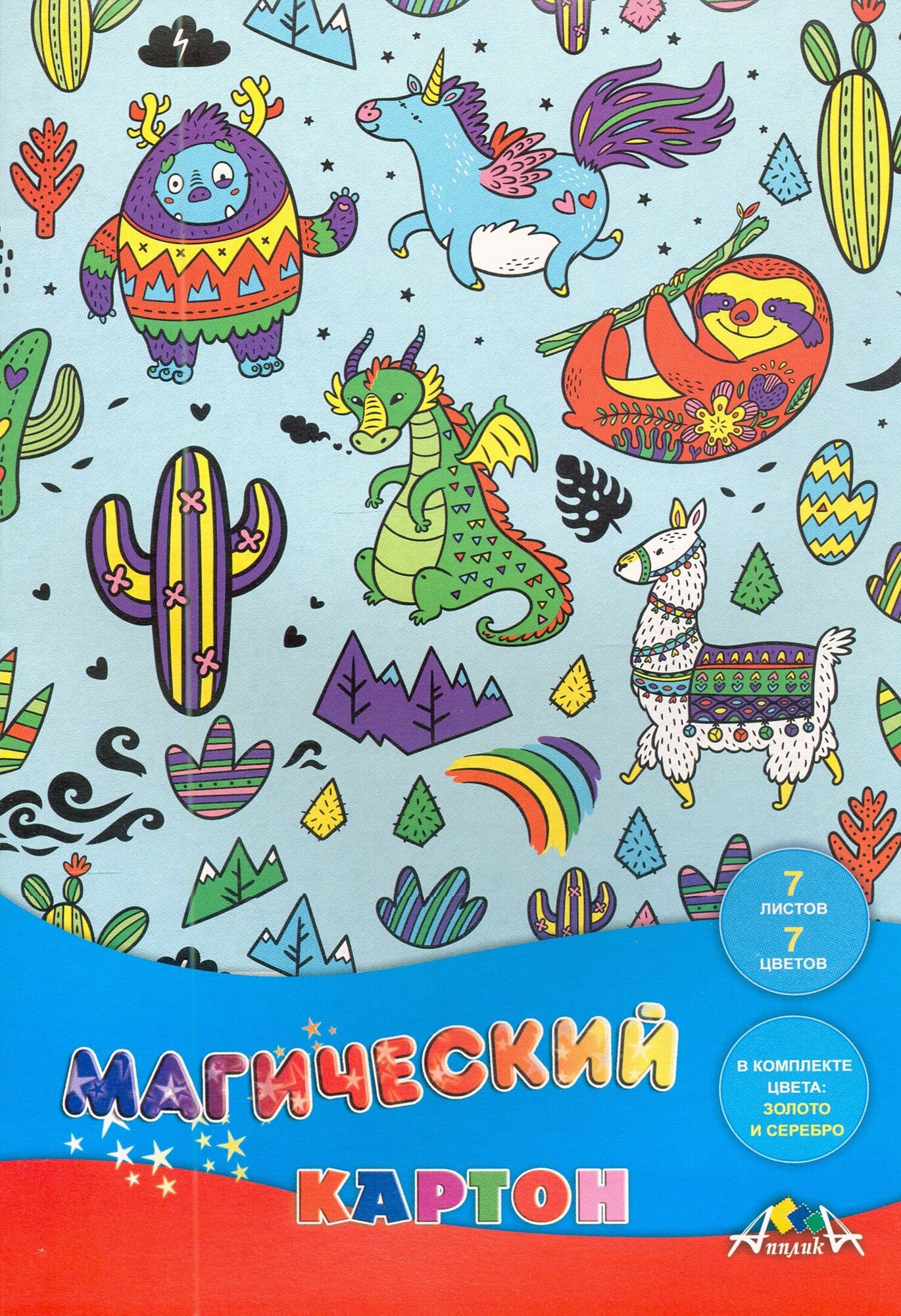 Картон цветной магический "Сказочные животные" 7 листов 7 цветов (С1857-14) АппликА