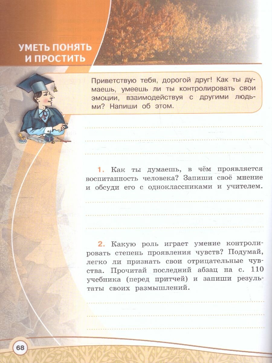 Тетрадь поможет четвероклассникам развить творческое мышление, даст представление о нравственном поведении, а также о правилах и нормах, в соответствии с которыми должны строиться взаимоотношения между людьми.