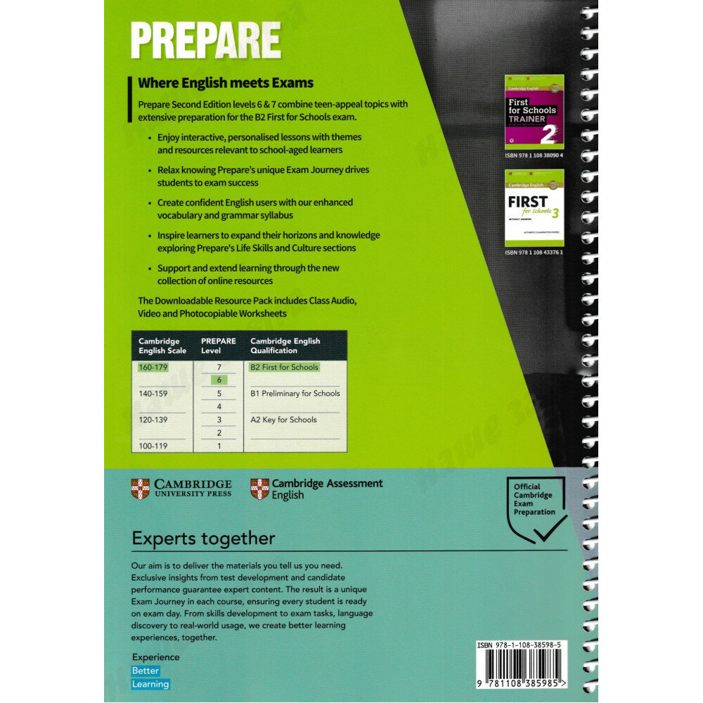 'Teen-appeal' topics combined with extensive preparation for A2 Key for Schools, B1 Preliminary for Schools, B2 First for Schools and C1 Advanced.