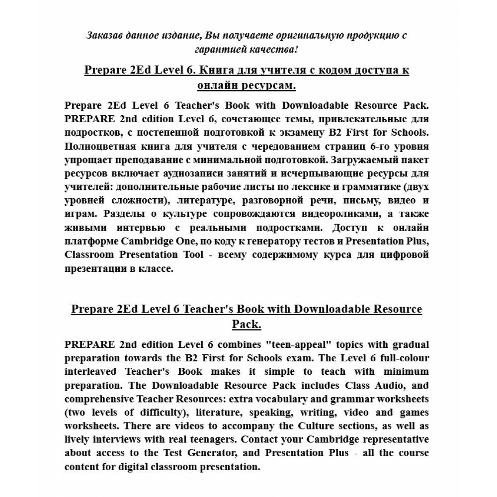 Сервис сравнения цен СкидкаГИД предлагает сравнить цены на товар «Книга: Prepare. Level 6. Teacher's Book with Digital Pack (Fricker Rod); Cambridge, 2021»