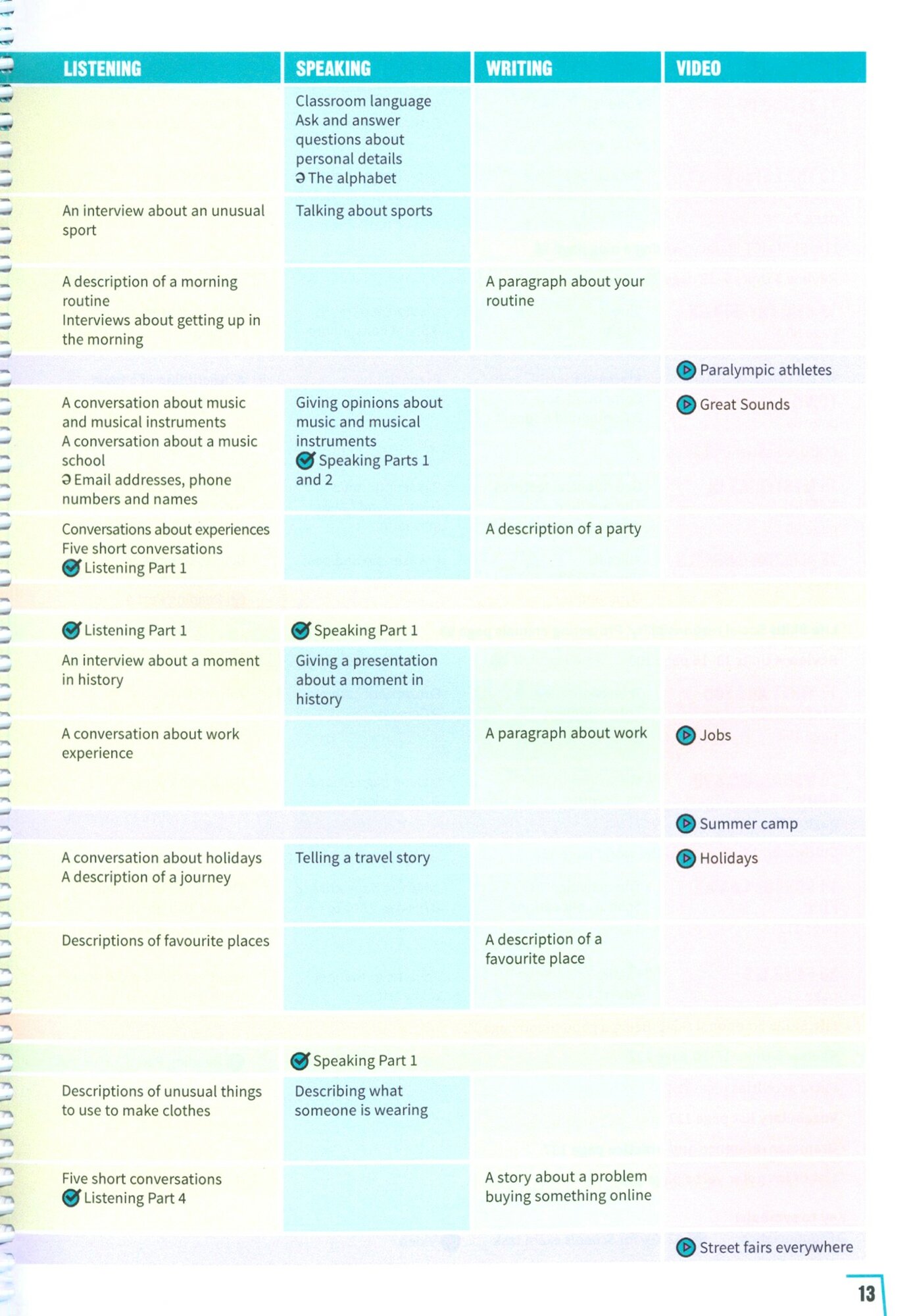 'Teen-appeal' topics combined with extensive preparation for A2 Key for Schools, B1 Preliminary for Schools, B2 First for Schools and C1 Advanced.