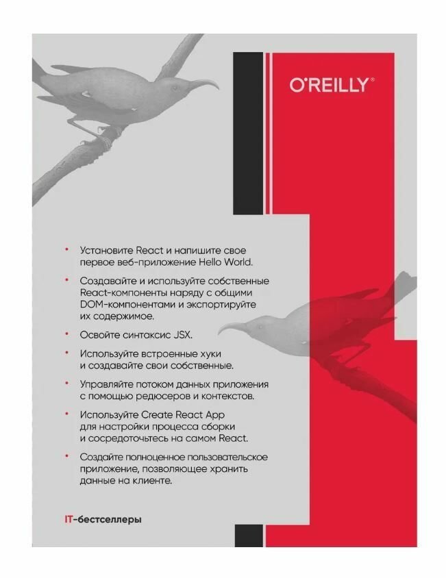 Незаменимая книга по React - технологии с открытым исходным кодом для быстрого создания многофункциональных веб-приложений. Второе издание, обновленное с учетом последней версии React, показывает, как создавать компоненты React и организовывать их в удобные для сопровождения крупномасштабные приложения. Если вы знаете синтаксис JavaScript, то сразу можете приступать к работе.