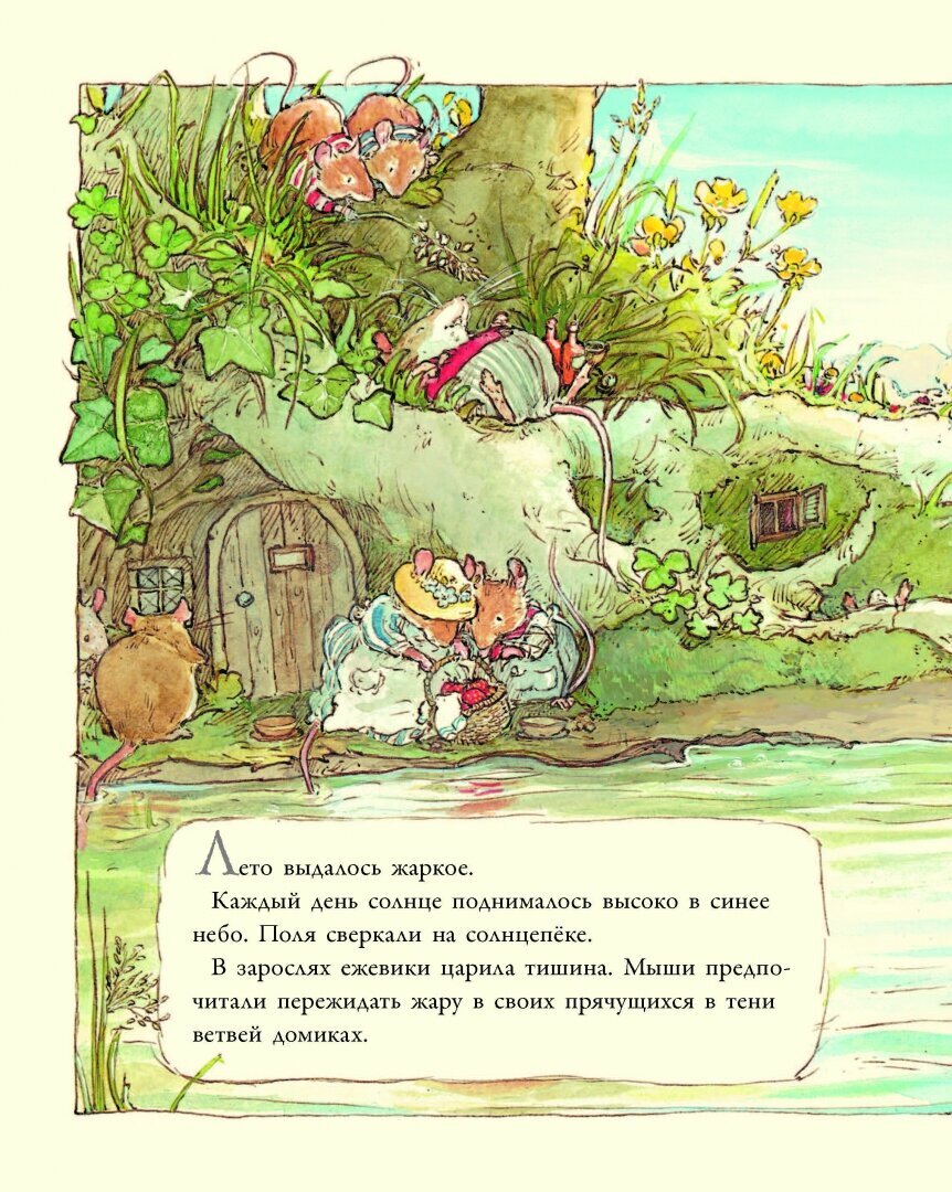 Эта книга очень милая: мир мышек детально создан и нарисован мягкими красками. История очень летняя и уносит в уютное детство, где так много волшебства можно выдумать из одной фразы «свадьба мышек на берегу ручья». Я бы сказала, что книгу эту стоит купить даже не ради текста, а для разглядывания картинок, сопровождающих сюжет. Вместе с ребенком можно выдумать гораздо больше, изучая рисунки из книги. А потом еще и самим заняться творчеством: рисовать, лепить, шить, сочинять и рассказывать истории.