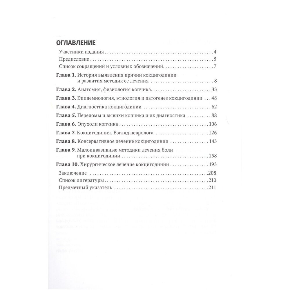 Настоящее руководство содержит основные сведения о тактике диагностики и лечения кокцигодинии с учетом новейших данных. При написании книги авторы основывались на собственном опыте лечения (в том числе хирургического) нескольких тысяч пациентов с кокцигодинией. Доступность и четкость изложения, подробное обсуждение "пограничных" проблем делают издание полезным не только для травматологов-ортопедов и неврологов, но и для врачей общего профиля, терапевтов, хирургов, гинекологов, проктологов, психиатров и врачей других специальностей. Книга может быть также использована при обучении студентов старших курсов медицинских вузов, интернов и клинических ординаторов.