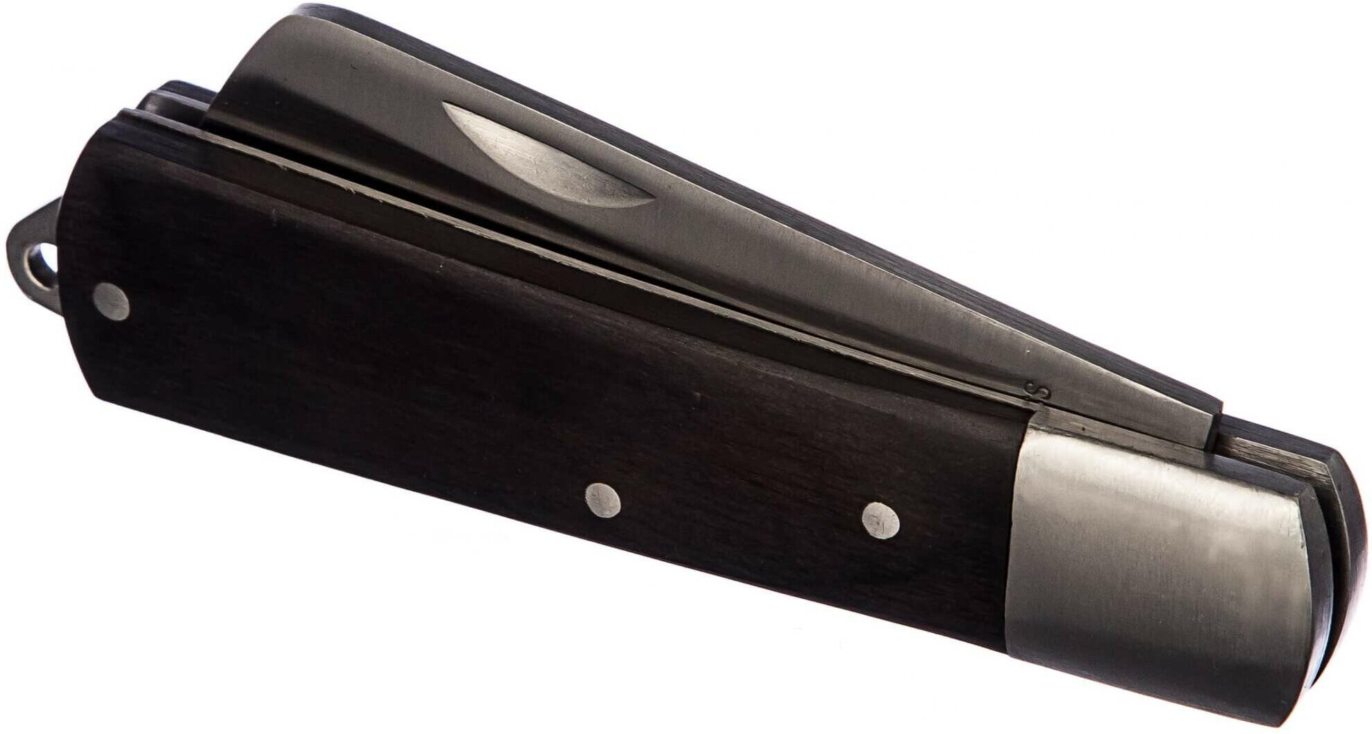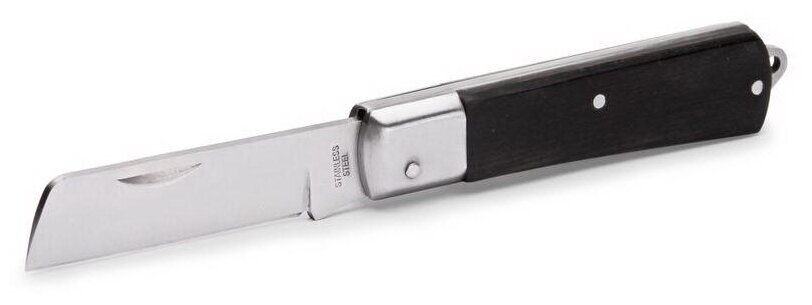 ?Монтерский нож КВТ 57596 является прекрасным помощником для выполнения операций в сфере электромонтажных работ. Нож прост и удобен в применении, он оснащен эргономичной ручкой, которая надежно располагается в ладони в процессе резки. Нож служит для разделывания кабеля и снятия изоляции.??Материал лезвий: нержавеющая сталь??.? ?Ширина лезвия: 21? ?мм??.? ?Толщина обуха: 3? ?мм??.? ?Рукоятка из? ?термомодифицированной древесины??.? ?Отверстие для крепления карабина??.? ?Длина: 115/200? ?мм??.?