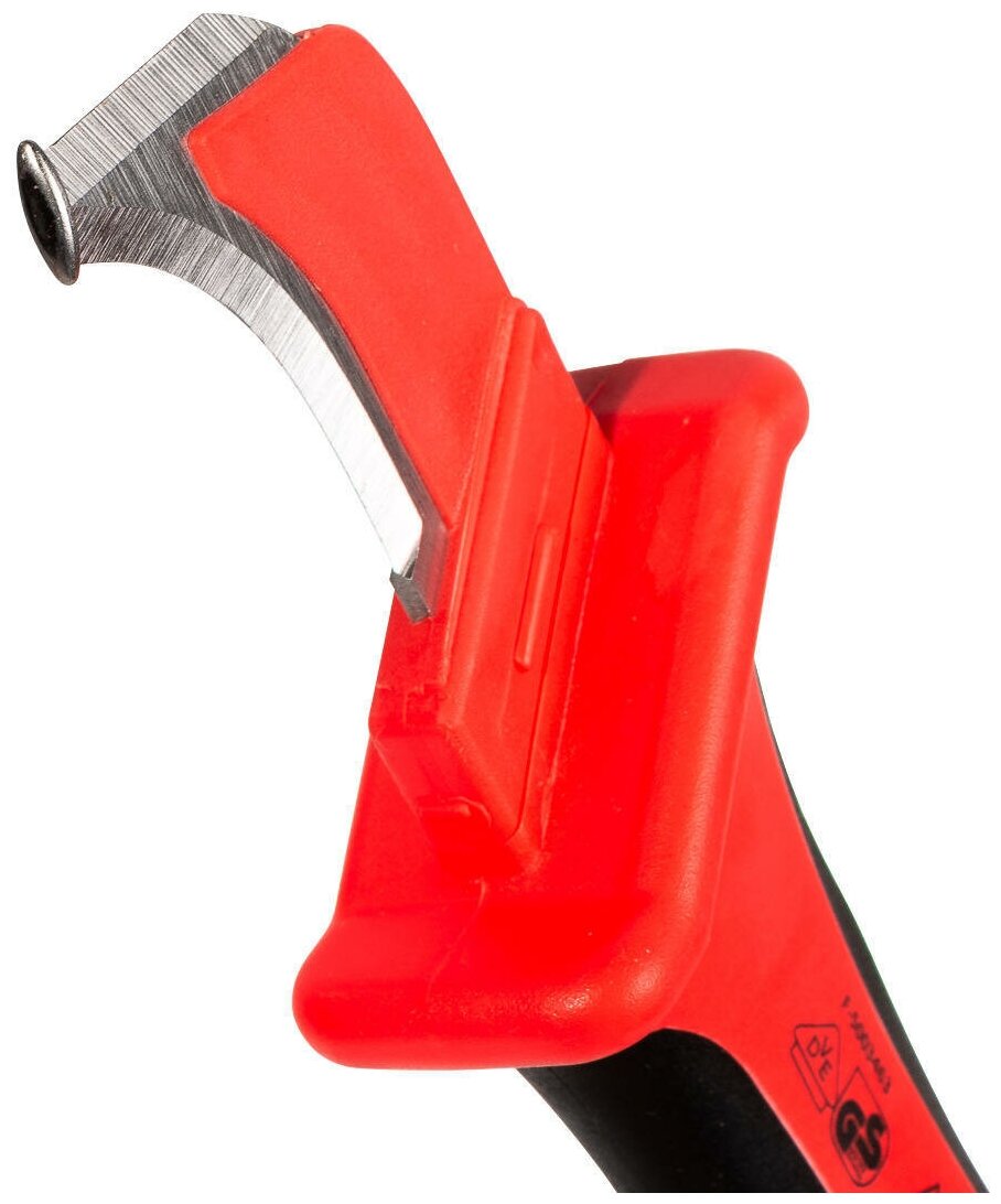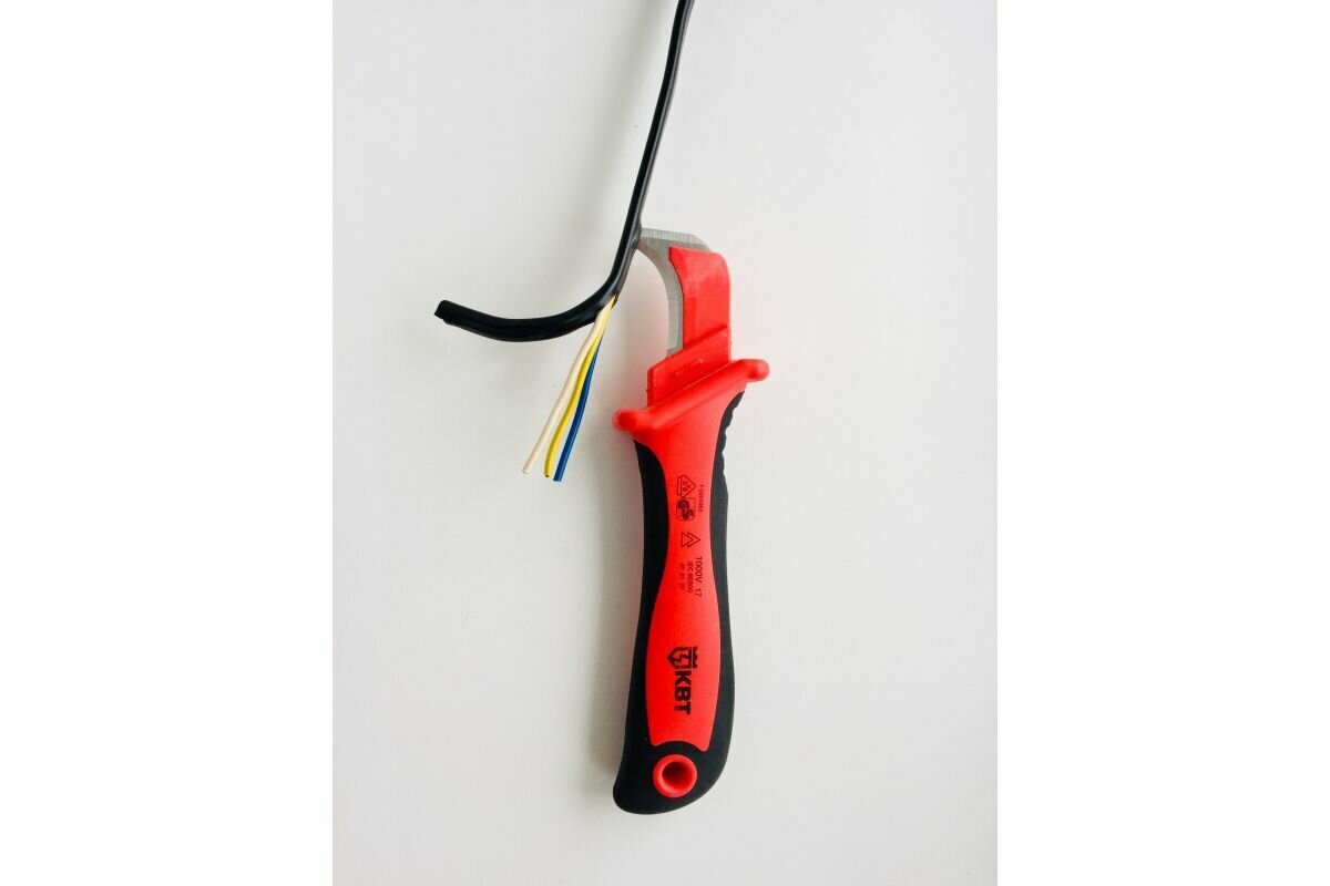 | Прочие особенности и свойства | Для работы под напряжением до 1000 В,Частично изолированное изогнутое лезвие с «пяткой» для легкого вскрытия оболочки кабеля без риска повреждения жилы,Лезвие из японской нержавеющей стали,Твердость лезвия HRC 51...53,Изолированная рукоятка с упором для пальцев,Двухкомпонентная рукоятка из нескользящей термопластрезины,Защитный чехол для безопасного хранения и транспортировки,Снятие оболочки с многожильных кабелей без повреждения жильной изоляции |