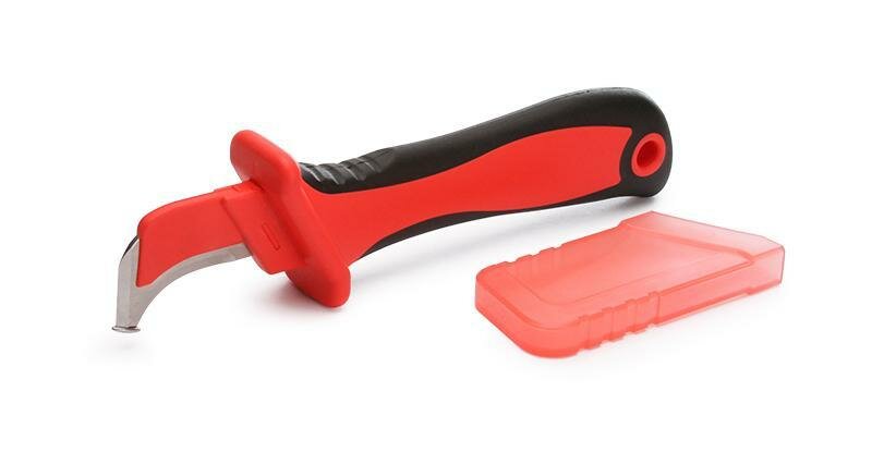 Для работы под напряжением до 1000 В. Частично изолированное изогнутое лезвие с «пяткой» для легкого вскрытия оболочки кабеля без риска повреждения жилы. Лезвие из японской нержавеющей стали. Твердость лезвия HRC 51...53. Изолированная рукоятка с упором для пальцев. Двухкомпонентная рукоятка из нескользящей термопластрезины! Прозрачный защитный чехол для безопасного хранения и транспортировки. Нож для снятия оболочки с многожильных кабелей без повреждения жильной изоляции.