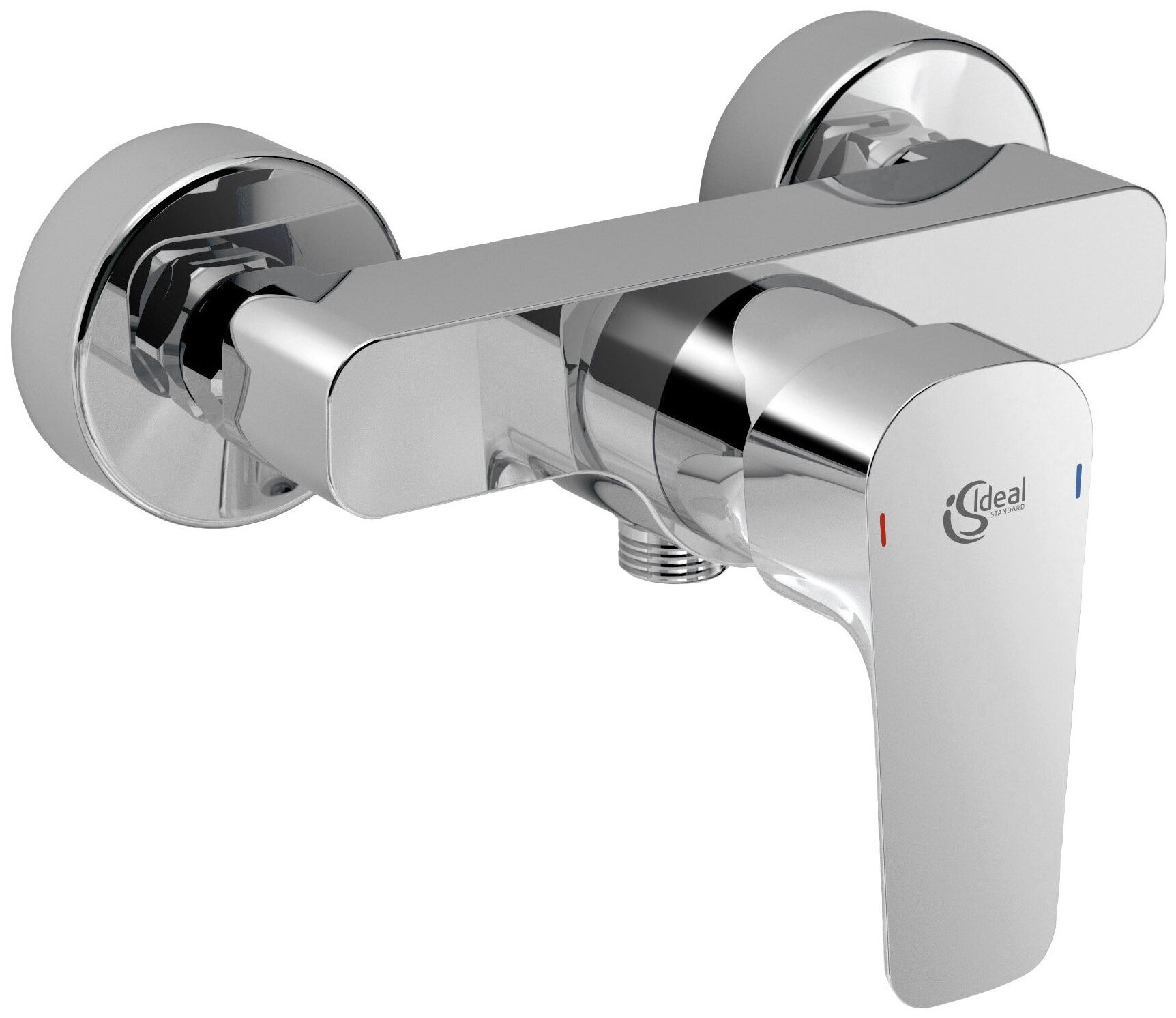 Однорычажный смеситель для душа. Металлические накладки. Картридж 40 мм с функциями HWTC и CLICK. Без душевого гарнитура. Металлическая рукоятка с индикаторами горячей/холодной воды. Обратный клапан. Цвет хром.