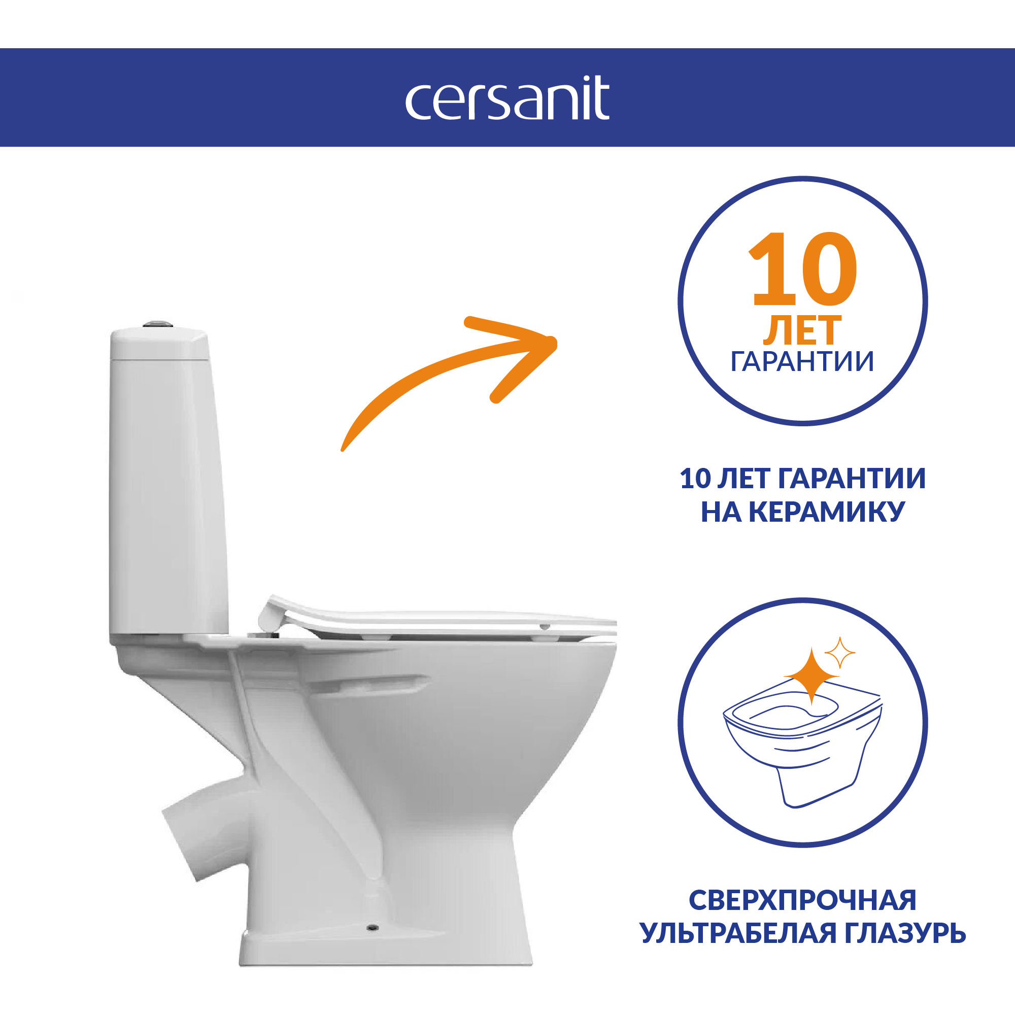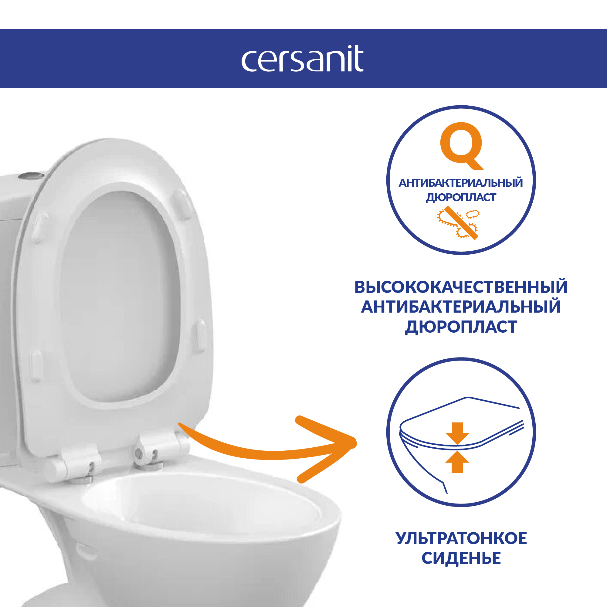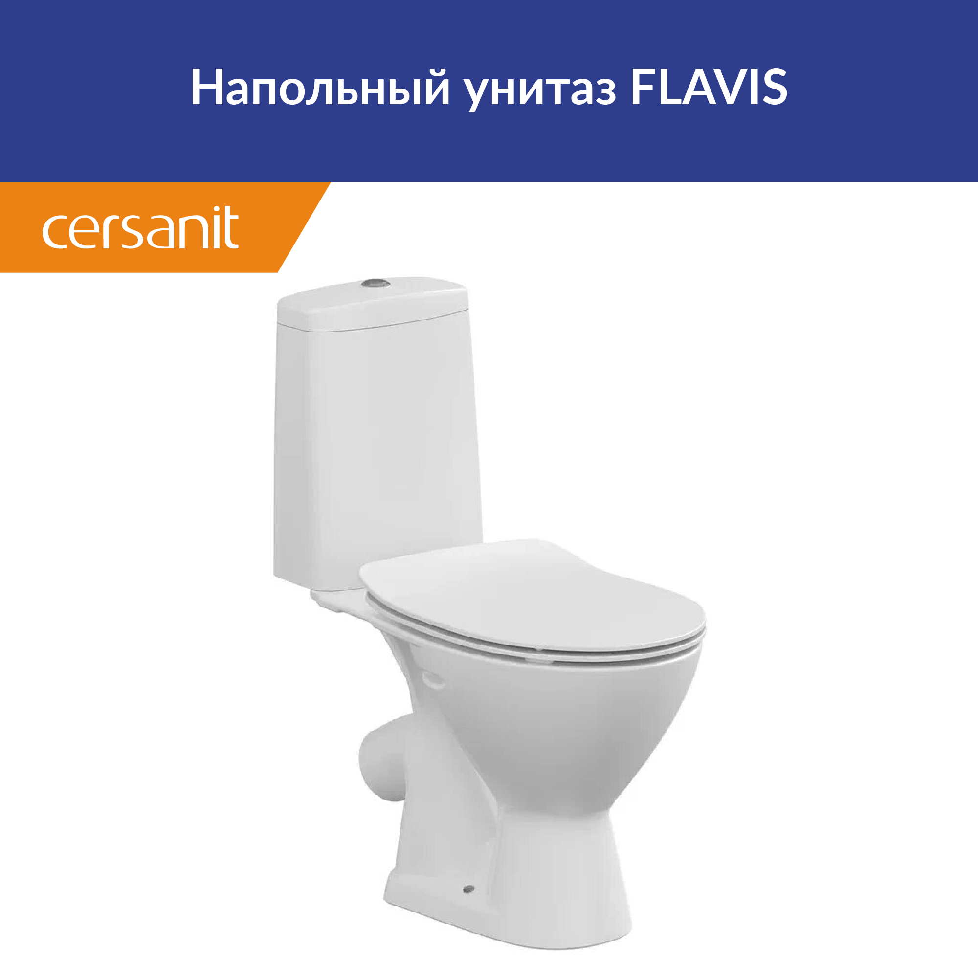 унитаз-компакт CERSANIT Flavis косой 2 режима дюропласт микролифт быстросъем Flavis 64288 с бачком и сиденьем Микролифт