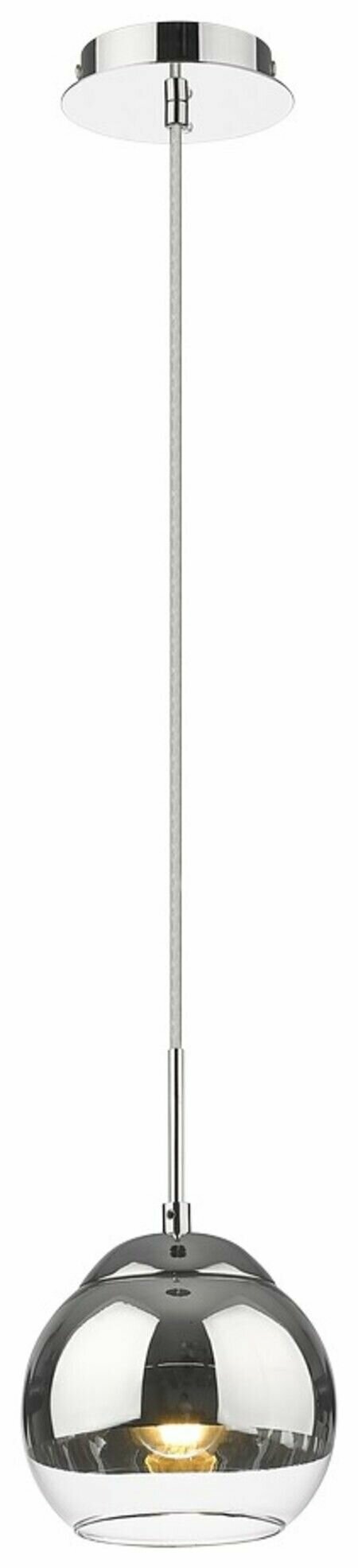 Подвесной светильник Velante бренда Velante из Италии в стиле Модерн. Одна из зон рекомендованных к размещению (необязательно) В гостиную. Место расположения - На потолок. Материал плафона/абажура - Стекло. Цвет плафона/абажура - Хром. Форма плафона - Шар. Направление абажуров/плафонов: Вниз. Количество плафонов/абажуров - 1. Материал арматуры - Металл. Цвет арматуры - Хром. Подходит для натяжных потолков: Да. Тип крепления: Монтажная пластина. Тип подключаемых ламп: Накаливания цоколя E27. Площадь освещения - 2. Мощность лампы, W: 40. Общая мощность, W: 40. Количество ламп - 1. Напряжение - 220. Степень защиты (IP): 20. Высота, мм - 1200. Ширина, мм - 150. Длина, мм - 150