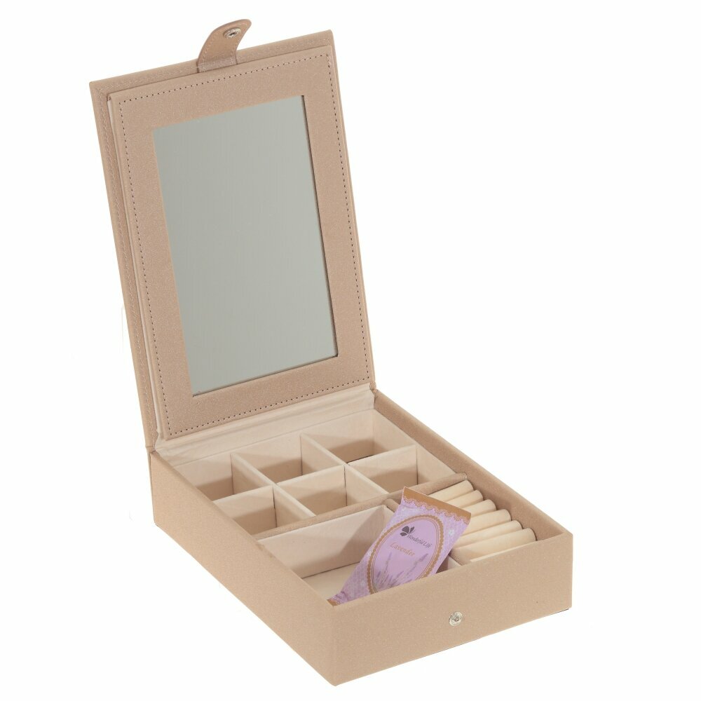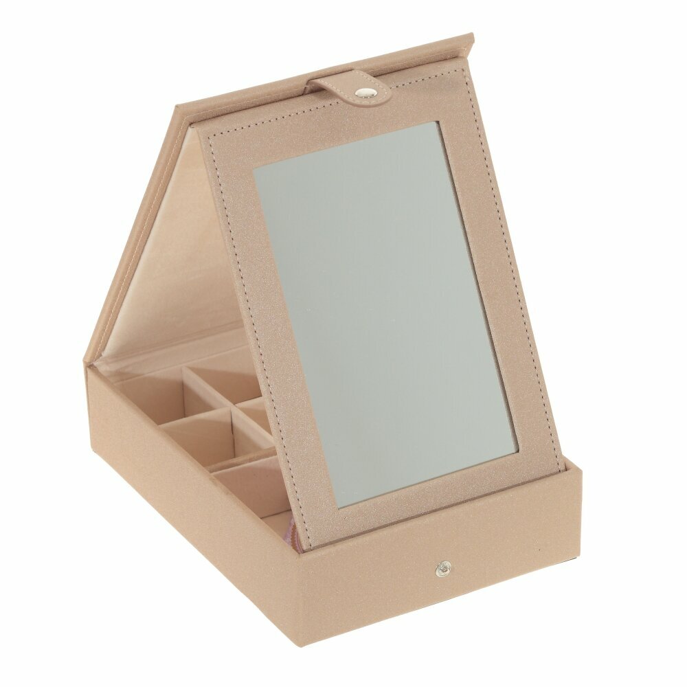 Шкатулка для украшений прямоугольной формы станет вашей любимицей, ведь она невероятно удобна и оригинальна одновременно. Внутри встроенное зеркальце, восемь секций для хранения. Эффектный дизайн, качественная фурнитура. Шкатулка хорошо впишется в интерьер комнаты и станет неотъемлемой частью на косметическом столике.