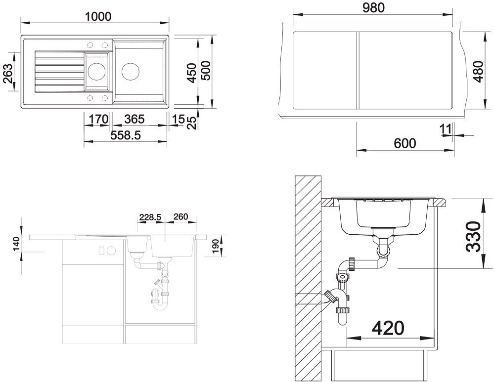 Мойка BLANCO ZIA 6 S выполнена из искусственного гранита, имеет большое крыло для сушки и дополнительную мини-чашу для удобства. Материал поверхности легко очищается, гигиеничен и не способствует распространению запахов.