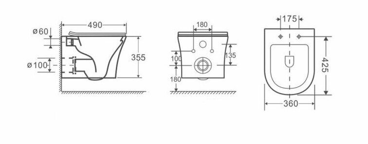 | Режим слива воды | определяется механизмом системы инсталляции/скрытого бачка |
