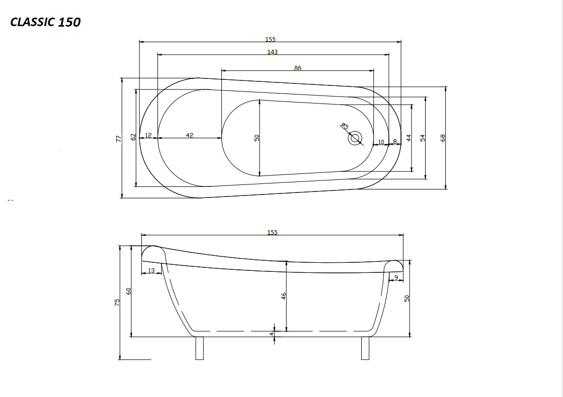 Модель: Classic 157x74 CT9323 без гидромассажа